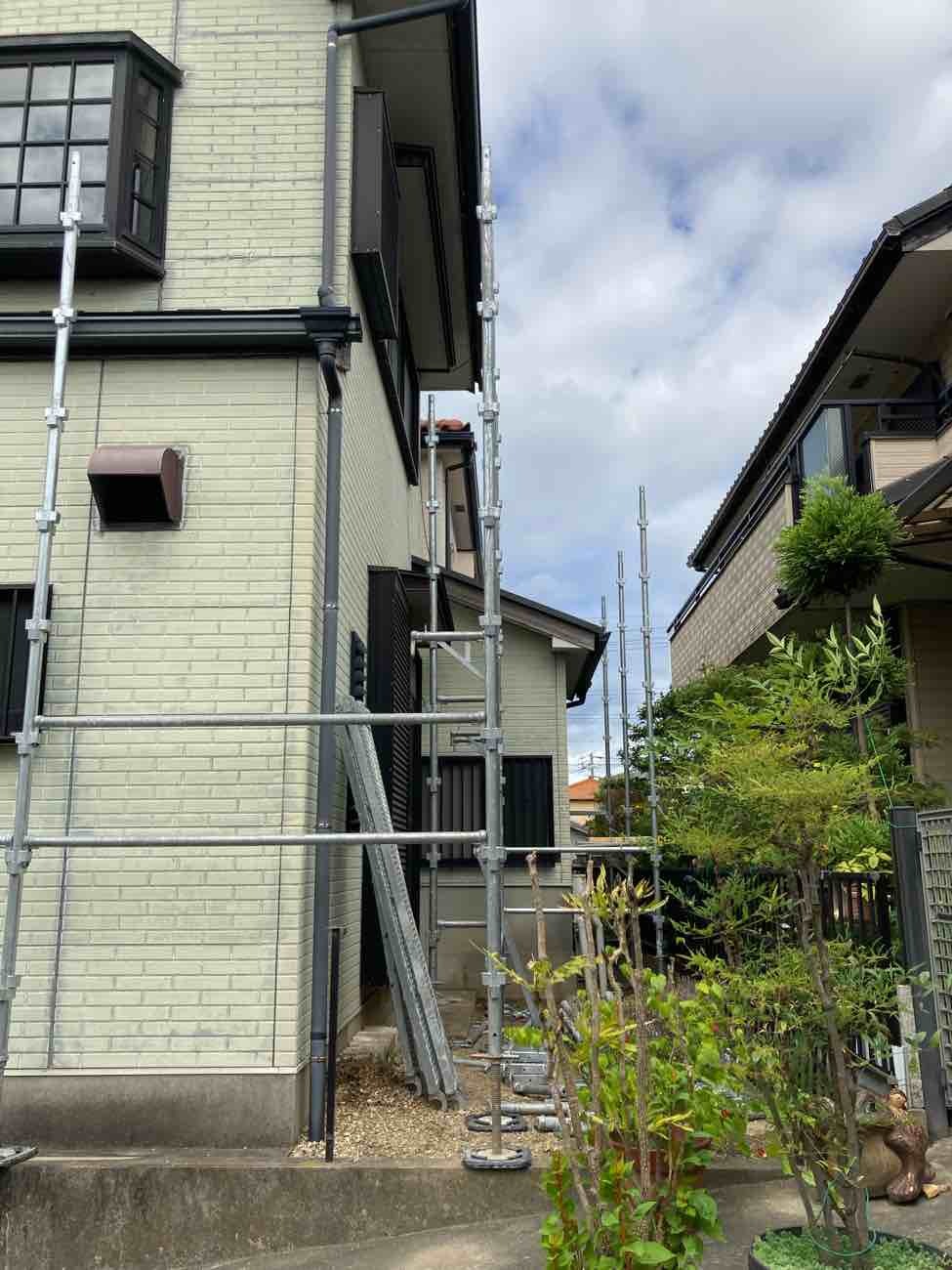 お盆期間中は台風が近づいていたため、強風で足場が倒れたり危険にならないよう、台風対策も行なっていました。