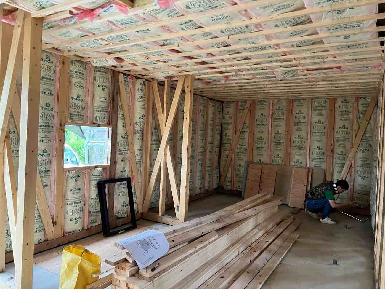 【古民家リノベ】断熱材、ボードを張っています
