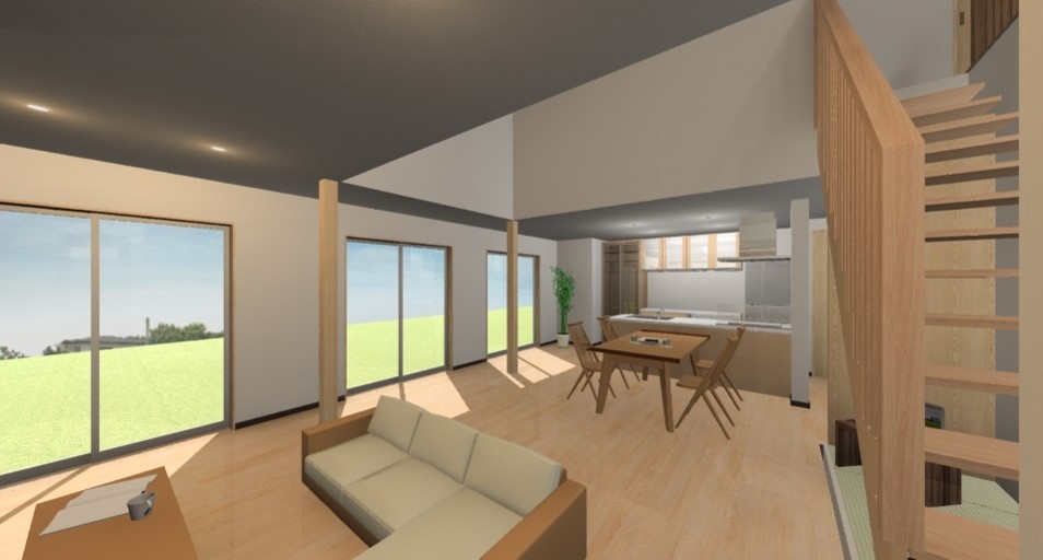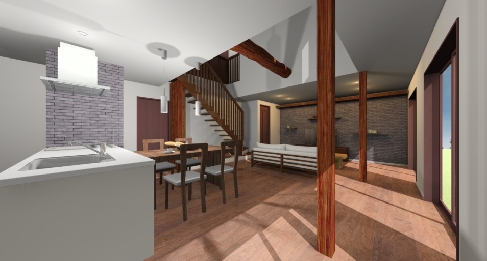 【大府市K様邸】丸太梁を活かしたリビング