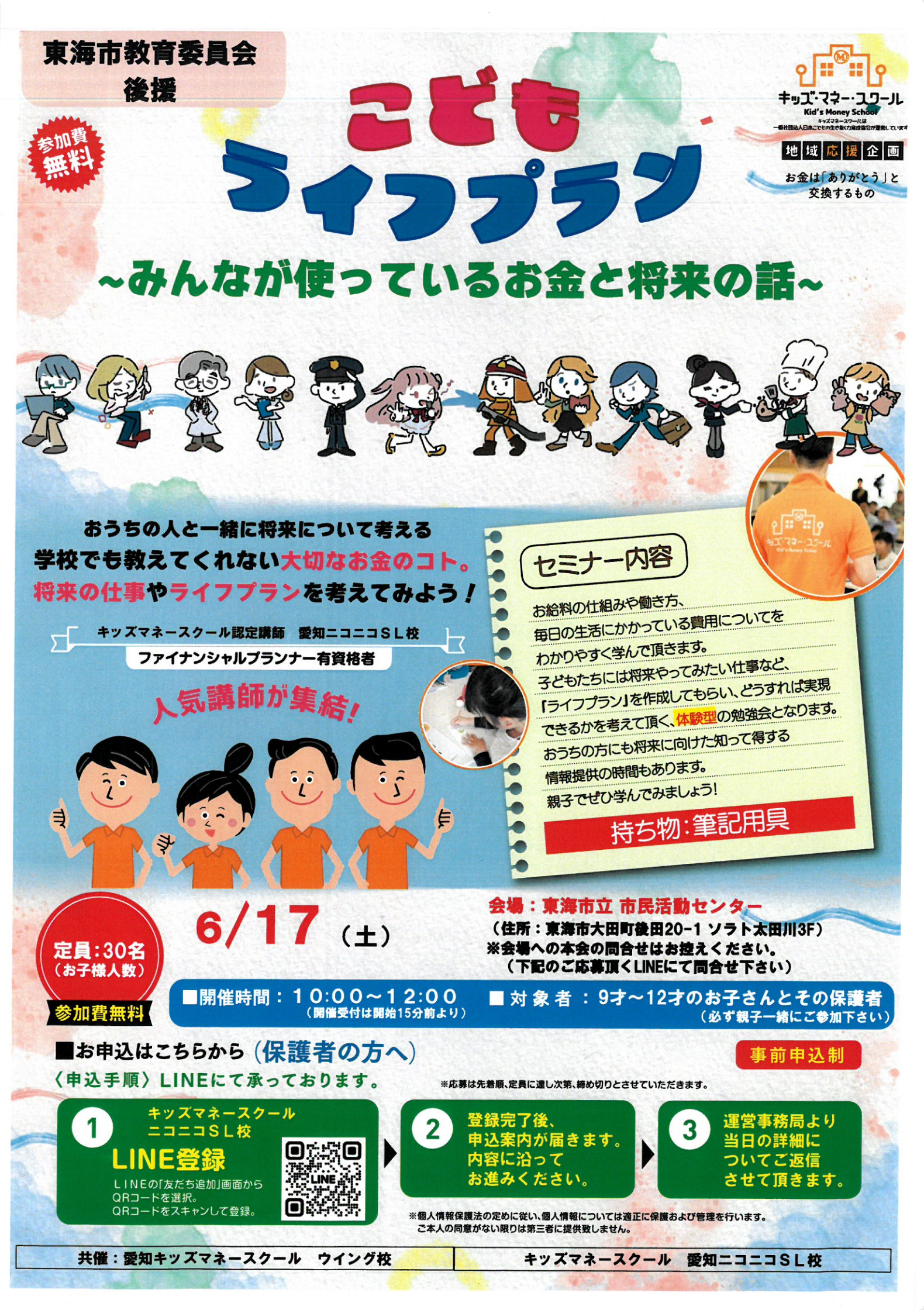 子どもたちには、将来やってみたい仕事など、『ライフプラン』を作成してもらい、どうすれば実現できるのかを考えていただく、体験型の勉強会になります。