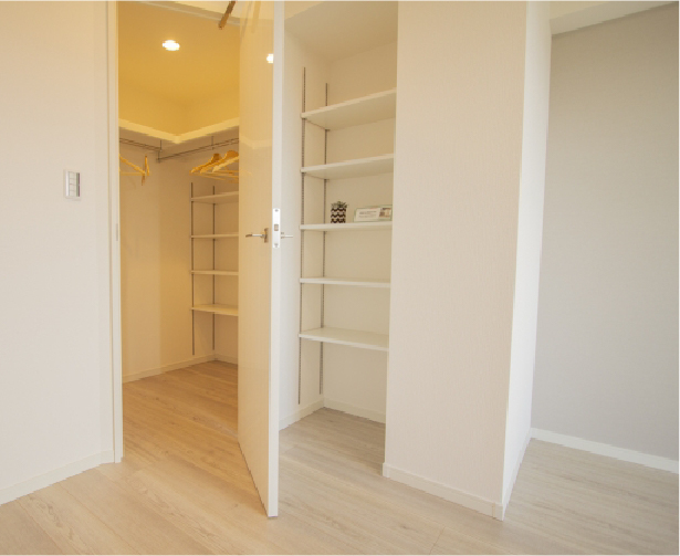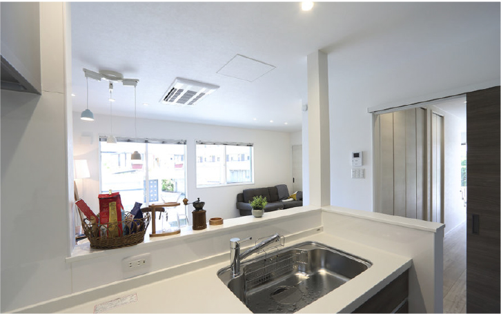 間仕切りがあり暗かったダイニングや和室を解体し、大きな開口部を活かした明るいLDKに再生。キッチンもアイランド型に変更し、便利なパントリーも隣接。また大容量のウォークインクローゼットやシューズクロークも新設し、スムーズに整理整頓できるようになりました。