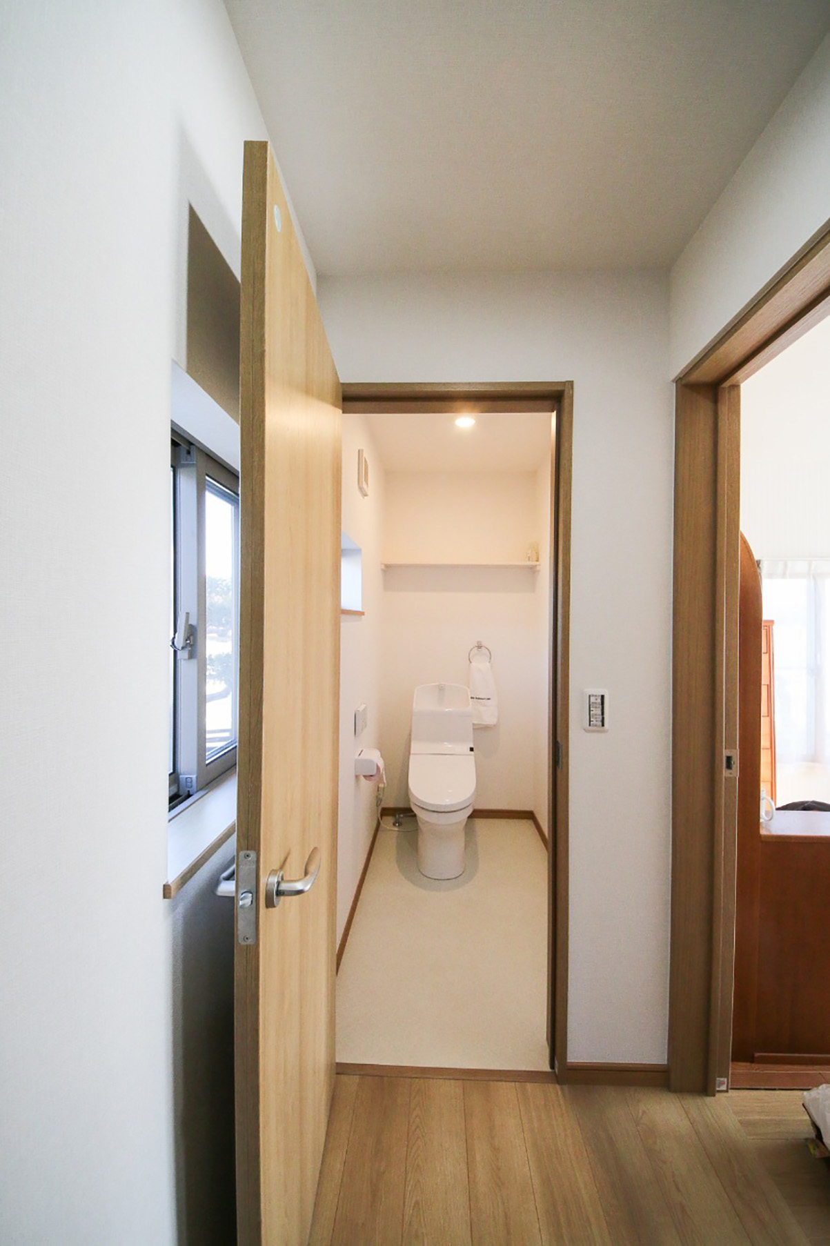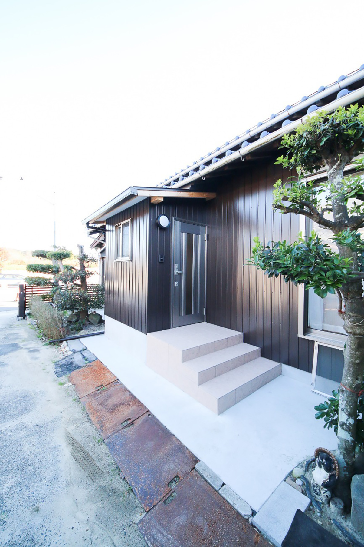 娘と孫がはなれに住むにあたり、耐震と断熱を意識したリフォームを行いました。リビングの窓か母屋を見ることができます。